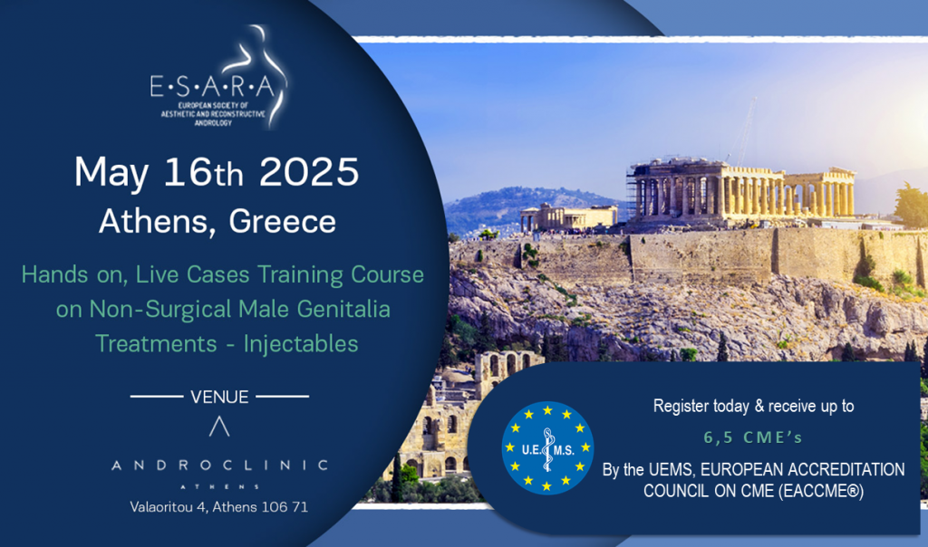 Hands on, Live Cases Course on Non – Surgical Cosmetic & Aesthetic Male Genitalia Treatments – Injectables, Accredited with up to 6,5 CME credits by the EACCME®